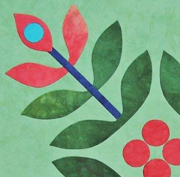 I took her patterns and subtracted a few things, appliqueing mine in reproduction reds, greens and chrome orange.